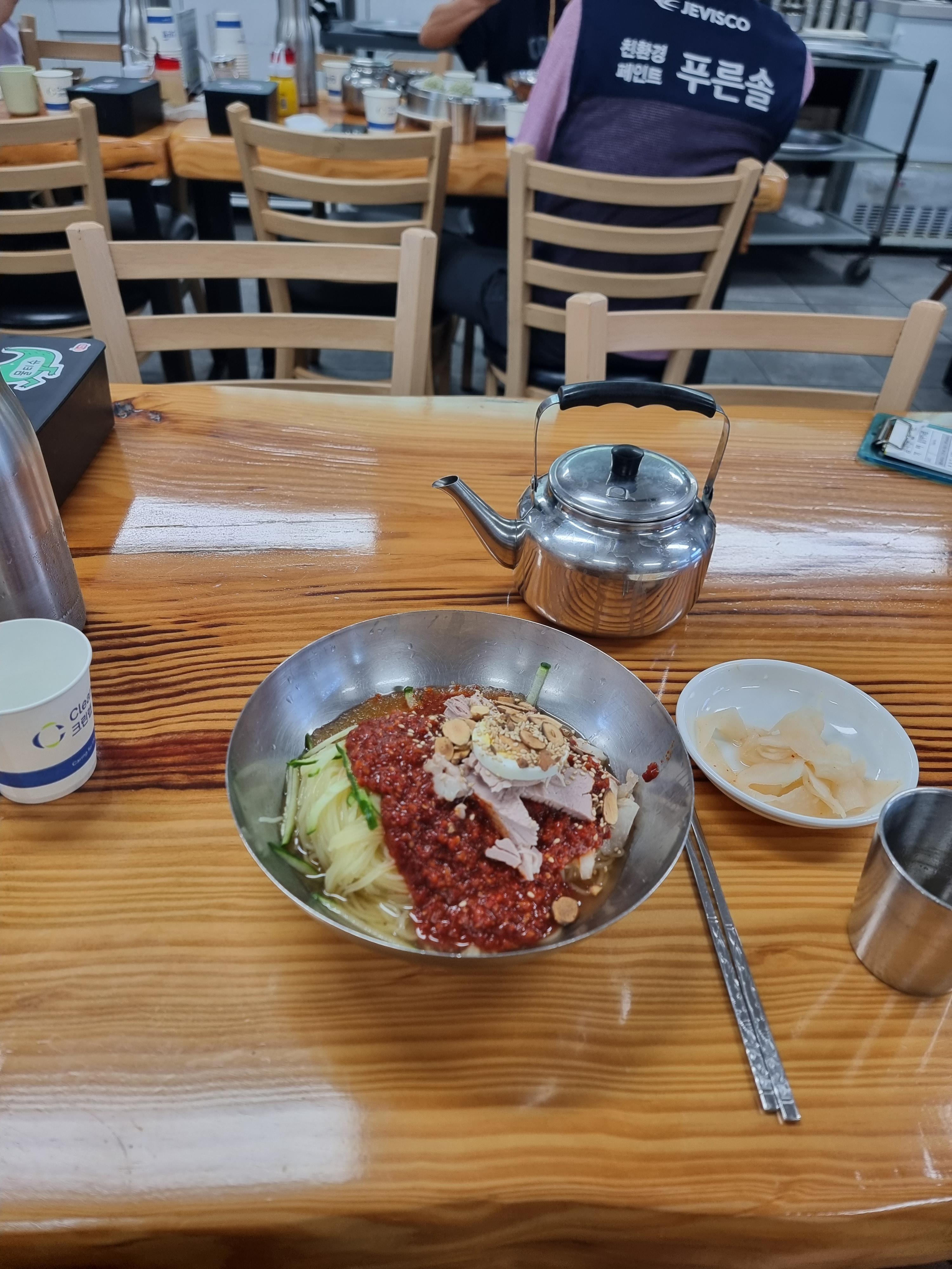물밀면, 비빔면, 돼지국밥을 고민하여였고, 다들 다양하게 드셔서 고르는 게 더 어려웠다.